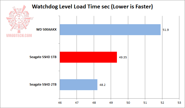 มาถึงการจับเวลาในการโหลดเข้าฉากของเกมส์ครับ ผมลองจับเวลาตอนโหลดฉากในเกมส์ Watchdog ดูพบว่าอยู่ที่ประมาณ 49 วินาทีซึ่งจะเร็วกว่า HDD ปกติอยู่เกือบสองวิเลยทีเดียว