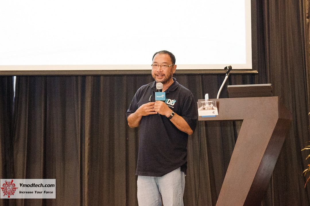 ท่านแรกเป็น คุณกอล์ฟ ผู้บริหารจากทาง Seagate ประเทศไทย มาให้ความรู้ NAS Harddisk รวมถึงแนะนำ บริการรับประกัน การกู้ข้อมูล Harddisk และสามารถ ซื้อการรับประกัน การกู้ข้อมูลได้ พร้อมกับการซื้อ Harddisk ซึ่งการกู้ข้อมูลของ Seagate จะแตกต่างจาก การกู้ข้อมูลแบบพันทิปที่ใช้ซอฟแวร์เป็นตัวกู้ได้บ้างไม่ได้บ้างตามอาการ แต่การกู้ข้อมูลของ Seagate จะเป็นแบบฮาร์แวร์ครับ คือส่งเข้าห้องแล็ปกันเลย รับประกันว่า ฮาร์ดดิสส่วนที่จานไม่เป็นรอยกู็ข้อมูลคืนได้แน่นอน ซึ่งการกู้ข้อมูลแบบนี้ จะมีค่าใช้จ่ายหลักหมื่นบาทครับ ซื้อประกันคุ้มครองไว้ก็กู้ข้อมูลฟรีๆกันเลย จ๊าบจริงๆ