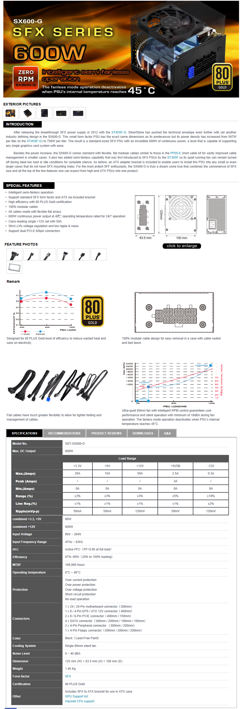 ……….สวัสดีวันนี้มี Power Supply ขนาด SFX Form factor มาเอาใจท่านที่ชอบอะไรที่เล็กๆจิ๋วๆกันนะครับ กับ Silverstone SFX Series SX600-G ซึ่งเป็น Power Supply ขนาด 600 Watt การันตีด้วย 80 PLUS® Gold กำลังไฟนั้นต้องบอกว่าเอากราฟิกการ์ดรุ่นใหญ่ๆแบบใบเดียวอยู่แน่นอนครับ และด้วยเป็น SFX Form factor ที่หาได้ยากในเมืองไทย จึงน่าจะโดนใจขา DIY ที่ขอบแต่งเคสขนาดจิ๋วกันนะครันวันนี้ เพื่อไม่ให้เป็นการเสียเวลาไปลุยกันเลยดีกว่า แต่ก่อนอื่นไปชมรายละเอียดจากเว็บไซต์ผู้ผลิตกันก่อนครับ