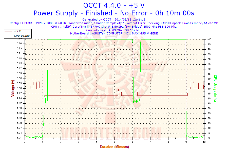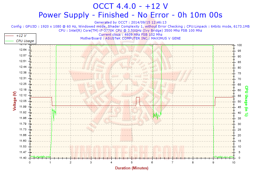 ระบบดึงกำลังไฟจากปลั๊กไฟบ้านเต็มที่ ที่ประมาณ 415 วัตต์ตอน Full Load ด้วย OCCT
