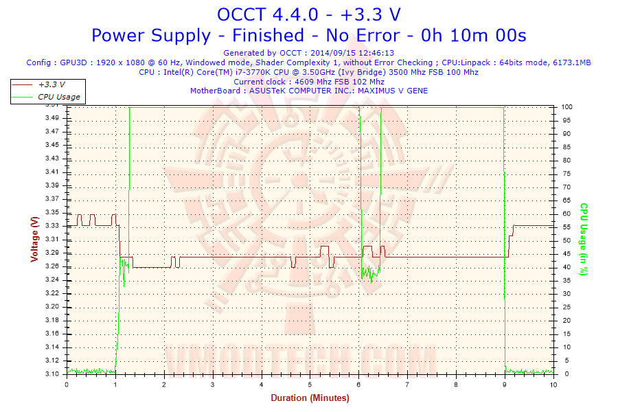 พิจารณาไฟ +3.3V ไม่มีโหลดอยู่ที่ประมาณ 3.33V ระหว่างมีโหลดตกลงมาที่ประมาณ 3.28V มีตกลงไปแถวๆ 3.26V เป็นบางช่วงครับ