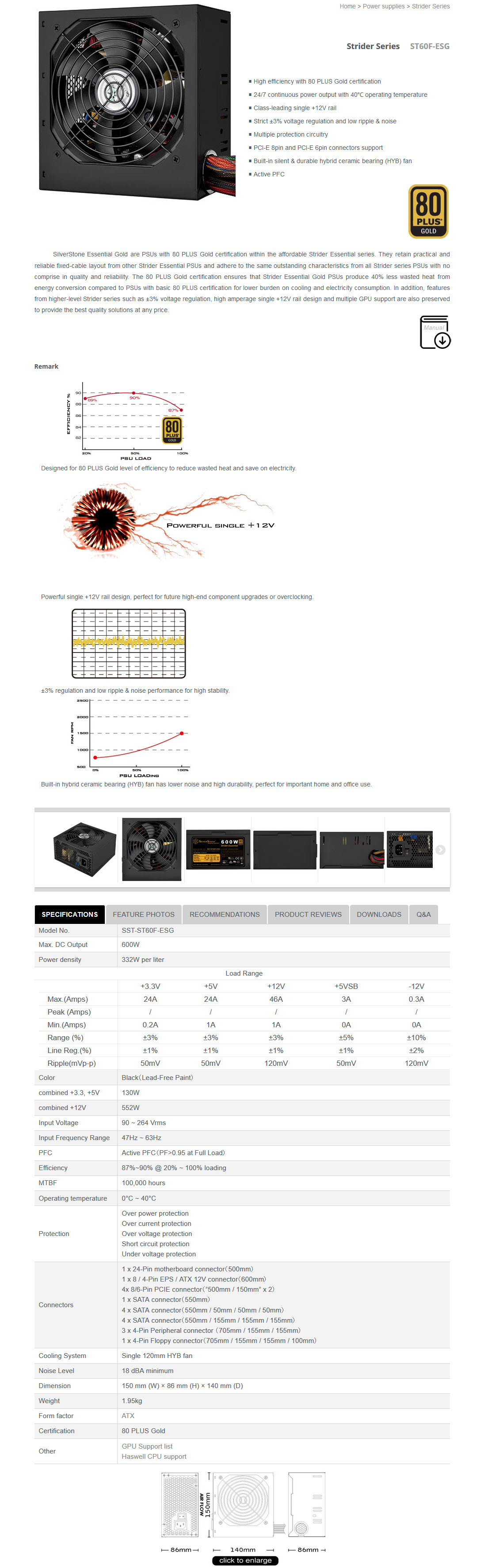……….สวัสดีวันนี้มี Power Supply จาก SilverStone มาฝากกันอีกแล้วครับ กับ SilverStone Strider Series ST60F-ESG 80Plus® Gold ซึ่งเป็น Power Supply ขนาด 600 Watt การันตีด้วย 80 PLUS® Gold สำหรับผลการทดสอบที่ออกมานั้นต้องบอกว่ารุ่นนี้ของเขาเทพจริงๆครับ ทำผลงานได้ประทับใจผู้ทดสอบมากๆ จะเป็นอย่างไรนั้นเข้าไปชมพร้อมๆกันครับ แต่ก่อนอื่นไปชมรายละเอียดจากเว็บไซต์ผู้ผลิตกันก่อนครับ