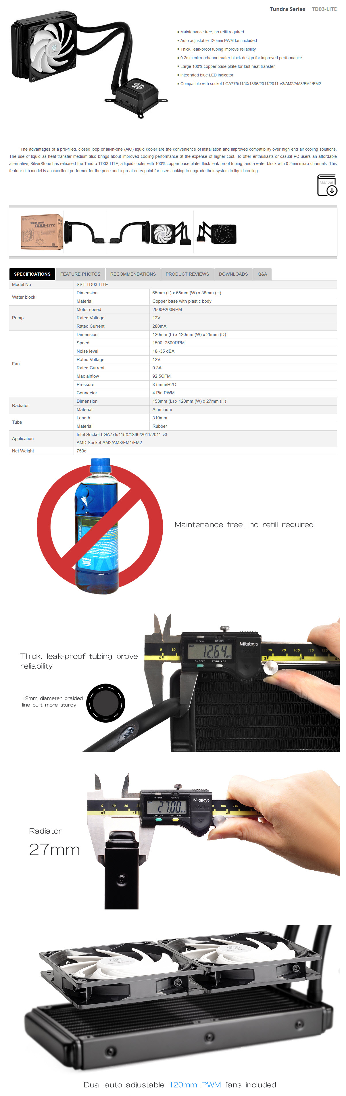 ……….สวัสดีครับ วันนี้มีชุดระบายความร้อน CPU Cooling น่าสนใจ มากฝากกันอีกซัก 1 ชุดนะครับ วันนี้ มาทดสอบ Liquid CPU Cooling กันบ้างครับ ส่งเข้าประกวดโดย SilverStone ในรุ่น SilverStone Tundra Series TD03-LITE Liquid Coolers เป็นชุดน้ำสำเร็จรูปที่มีหม้อน้ำแบบบาง 1 ตอนครับ งานนี้จะสวยงามเย็นสบายสมใจนึกแค่ไหนได้รู้กันครับ แต่ก่อนอื่นต้องไปชมรายละเอียดจากเว็บไซต์ผู้ผลิตกันก่อนครับ