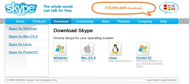 บทความนี้ผมจะแนะนำโปรแกรม โทรศัพท์กันทาง internet ครับ ซึ่งโปรแกรมนี้มีชื่อว่า Skype ซึ่งเป็นโปรแกรมนึงที่ผมลองใช้แล้วรู้สึกว่า Work กว่าโฆษณา Dtac จริงๆ และเหมาะกับชาวเนตบ้าพลังแบบพวกเราๆ และไม่ต้องใช้อุปกรณ์ อะไรมากมายนัก นอกจาก Internet Adsl256k/s ไมโครโฟนสักอันและลำโพงซักคู่ หรือจะให้ดีก็พวกหูฟังพร้อมไมโครโฟนในตัวเลย แค่นี้ก็ ok ล่ะ เราไปโหลดโปรแกรมกันก่อนเลยดีกว่าครับ http://www.skype.com/