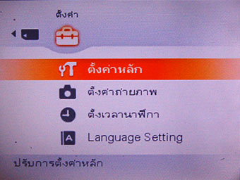 และสุดท้ายเป็นเรื่องของการตั้งค่าต่าง ๆ คับ ประกอบด้วยการตั้งค่าหลัก ตั้งค่าการถ่ายภาพ นาฬิกา และภาษาคับผม