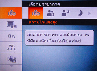 Menu เมื่อเลือก mode การถ่ายภาพแบบเลือกบรรยากาศ (Scene Shot)