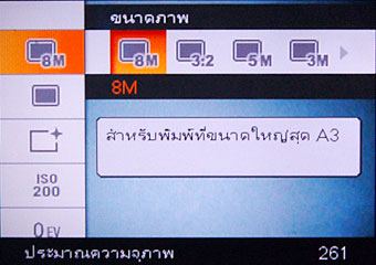 Menu เมื่อเลือก mode การถ่ายภาพแบบอัตโนมัติ