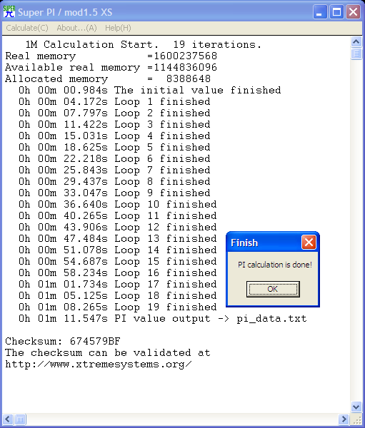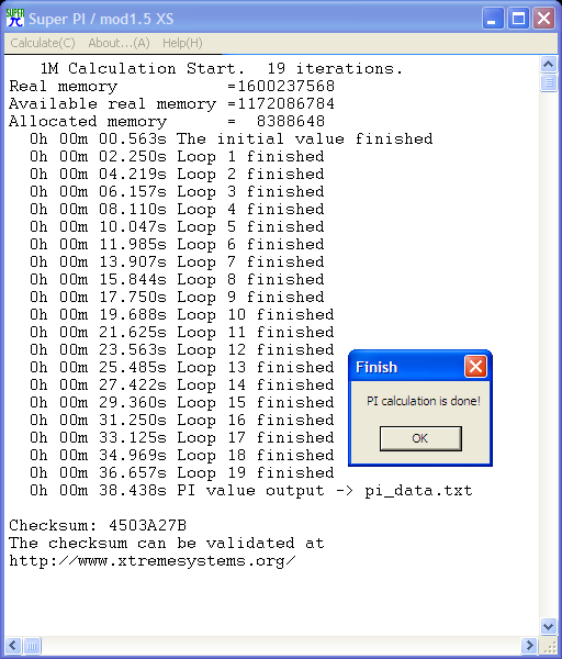SuperPI 1M เมื่อ CPU ทำงานที่ 1600 MHz.