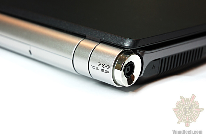 สำหรับการดีไซน์ ลายเส้น ด้านข้างนั้นออกแนว “สันเหลี่ยม” ครับผม และมีการลากเส้นให้ตัวฐาน เอนลงมาหาผู้ใช้ ซึ่งส่งผลให้เวลาที่เอามือมาวางพิมพ์งานเป็นเวลานานๆ จะช่วยลดความเมื่อยล้าได้ครับ และช่องระบายอากาศ ก็ยังคงเป็นระบายออกด้านข้าง ดังรูปครับ
