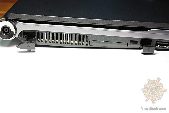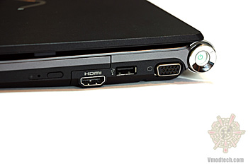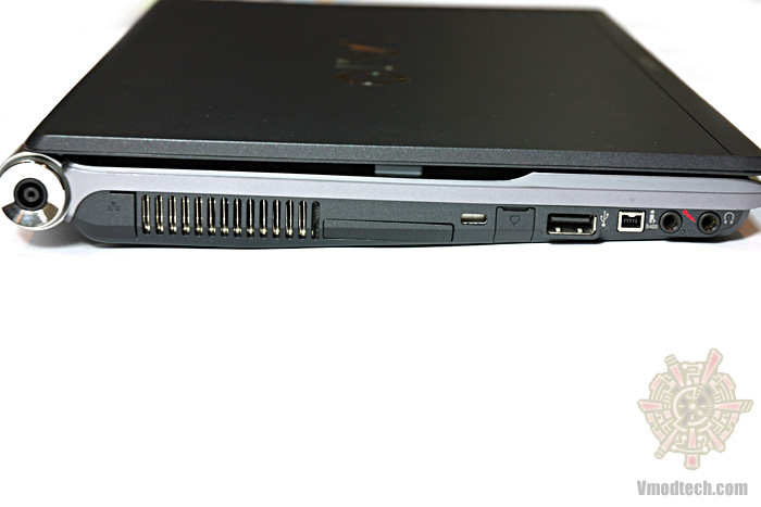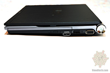 พอร์ตเชื่อมต่อ ด้านหน้ายังคงมีสลอต SD และ Memorystick ติดมาให้พร้อมกันครับ และมีสวิชเปิดปิดWireless Lanให้อีกด้วย ส่วนด้านข้างนั้น ก็มี USB มาให้ทั้งซ้ายและขวา IEE1394 แบบเล็ก ก็มีมาให้ด้านซ้าย แถมยังมีพอร์ตแลน RJ45 และ โมเดม 56เค แบบ RJ11 มีฝาปิดอีกต่างหากครับ เล่นเอาซะผมหาไม่เจอ และ HDMI กับ VGA out นั้นอยู่บริเวณด้านขวาครับ