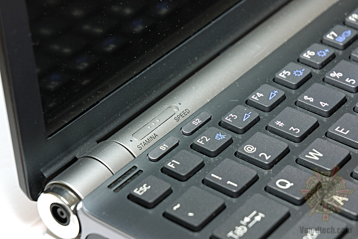 และตรงจุดนี้ครับ คือสวิชสับเปลี่ยนโหมด และ ฮอตคีย์สองปุ่ม โดยสวิช Stamina/Speed นั้น จะเป็นสวิตซ์ที่ใช้สับการ์ดทำงานระหว่างการ์ดจอ Intel GM45 ออนบอร์ดกับ Nvidia 9300M GS นั้นเองครับ โดยที่ปุ่ม Stamina จะเป็นการเลือกใช้ กราฟฟิคของอินเทลบนตัวชิปเซ็ต แชร์เมมโมรี่ 64mb ซึ่งจะประหยัดพลังงานกว่าโหมด Speed ที่จะกลับไปใช้ Nvidia 9300M GS ที่ติดแรมมาด้วยถึง 256MB ครับ ส่วนช็อตคัตสองปุ่ม สามารถทำการตั้งใน Vaio Control Center ได้ครับ ว่าจะเอาไว้ให้ทำอะไร