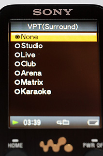 Setting Menu ทำออกมาง่ายๆดีครับ อิอิ ที่น่าสนใจก็จะมี Equalizer 4 แบบให้เลือก รวมไปถึง Custom slot สองสลอต และ ฟังชั่น VPT surround ที่น่าสนใจก็ตรงที่มี Karaoke นี่แหละครับ อิอิ เท่าที่ทดลองใช้ พบว่าสามารถตัดเสียงนักร้องออกไปได้ในระดับหนึ่งเท่านั้น โดยที่ไม่รู้สึกว่าเสียงเบาลงแต่อย่างใด ก็พอที่จะถูไถ เอาไปร้องไปฟังไปได้ในระดับหนึ่งครับ