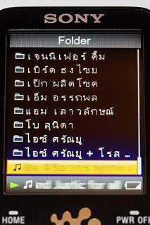 ส่วนรูปล่าง แสดงถึงการแสดงผลภาษาไทย ฟ้อนท์ ไม่ค่อยสวยเท่าไหร่ แต่ปัญหาสระลอย หรือไม่ตรงตำแหน่ง ไม่มีให้เห็นใน Walkman แน่นอนครับ ดังภาพ