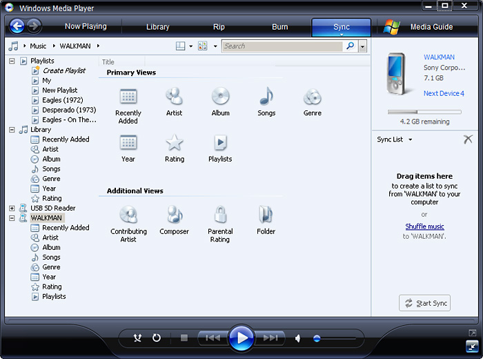 สำหรับการ Transfer ไฟล์ วินโดวส์ XP จะมองเห็น Walkman เป็น Portable Media player เองโดยอัตโนมิติครับ ถ้าต้องการลากไฟล์ลงใน Windows Explorer สามารถทำได้ครับ แต่ต้องลากไฟล์ไปวางลงให้ถูกโฟลเดอร์ด้วยเท่านั้นเองครับ