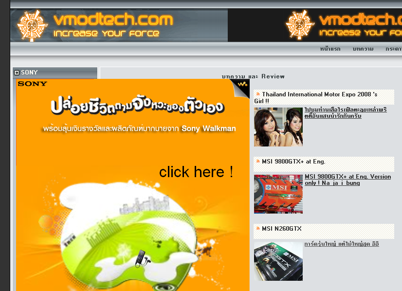 ขั้นแรก ให้คลิกแบนเนอร์ ที่เป็นแบนเนอร์ของ Sony Walkman ก่อนครับ หรือทำการคลิกลิงค์โดยตรง ที่รูปภาพข้างบน ท่านจะได้เพจดังรูปล่าง