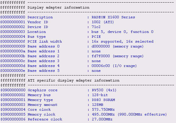 | Chipset | R520XT | R520XL | RV530XT | RV530Pro | RV515Pro | RV515LE |