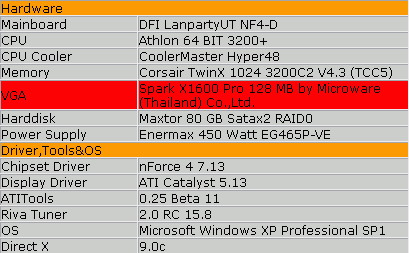 มาถึง System ที่ใช้ทำการทดสอบ Spark X1600Pro 128 MB ในครั้งนี้