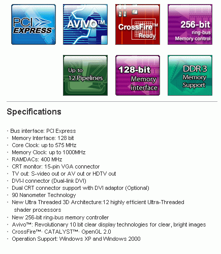 | Name | X1800XT | X1800XL | X1600XT | X1600Pro | X1300Pro | X1300 |