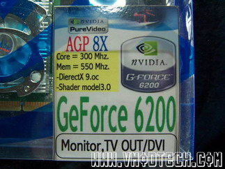 เห็นเจ้าน้องเล็กนอนในกล่องสวยๆป่าวครับ เดี๋ยวมันจะตื่นครับ | บอกไว้ชัดเจนว่า GF6200 Core/Mem 300/550MHz ครับ |
