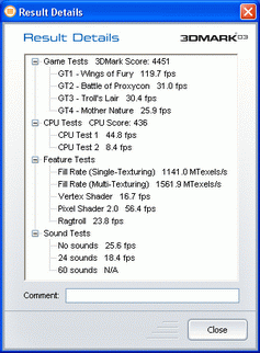 ทดสอบแบบเดิมๆ ที่ Core/Mem 300/550MHz ครับ และ ทดสอบแบบ Overclock เป็นการทดสอบแบบ OC VGA แต่ไม่เปิด Pipeline ครับ จะได้เอาคะแนนไปเทียบกัน ไปดูคะแนนกันเลยนะครับ