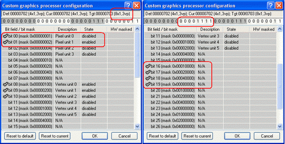 Product Name | # pixel processors | # vertex processors | Bus width | Memory Type/Amount | GPU Speed | RAM Speed |