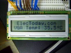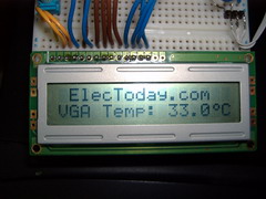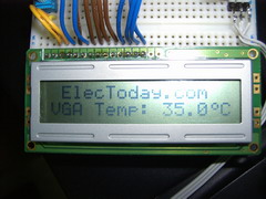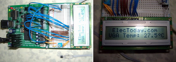 ตัวนี้แหละที่ใช้วัด เห็นตัวเล็กๆดำๆมั้ยครับ ใช้ PIC Microcontroller เขียนโปรแกรมให้อ่านค่าอุณหภูมิจากตัว DS1820 ตอนนี้ที่ห้องผมอุณหภูมิ 27.5 องศาครับ