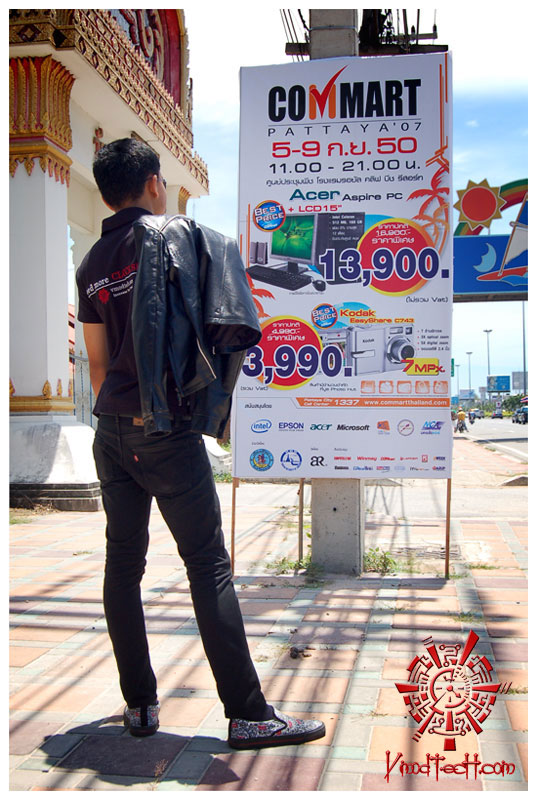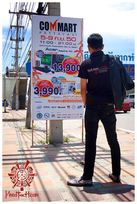 หืม..ท่านเทพตรงไปยืนดูป้ายงาน COMMART PATTAYA ‘07 หรือว่าท่านเทพที่มาคราวนี้ มีเป้าหมายการปฏิบัติการภารกิจอยู่ที่ในงานนี้!