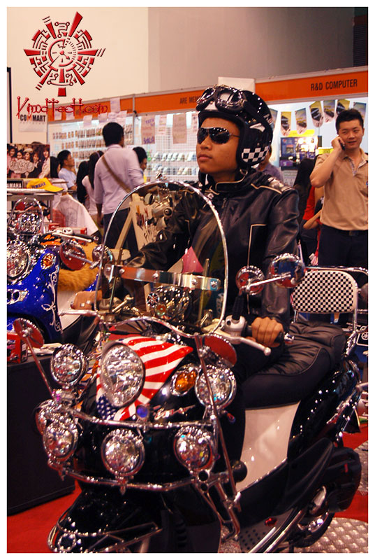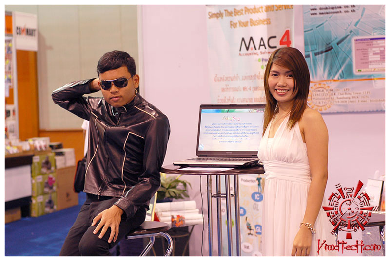 เมื่อท่านเทพเดินจนเริ่มเมื่อยล้า ก็มาแวะนั่งพักที่บูตMAC4 ซึ่งก็สร้างความปลาบปลื้มยินดี ให้แก่พริตตี้สาวสวยประจำบูตนี้เป็นยิ่งนัก