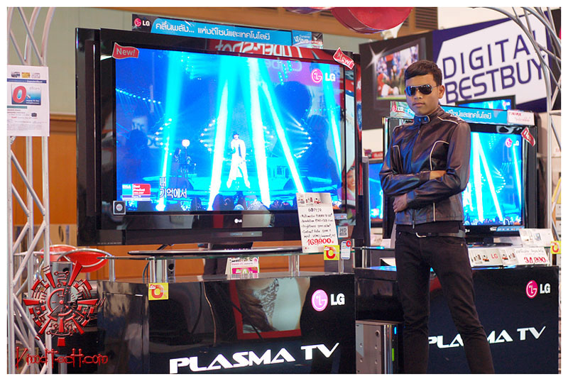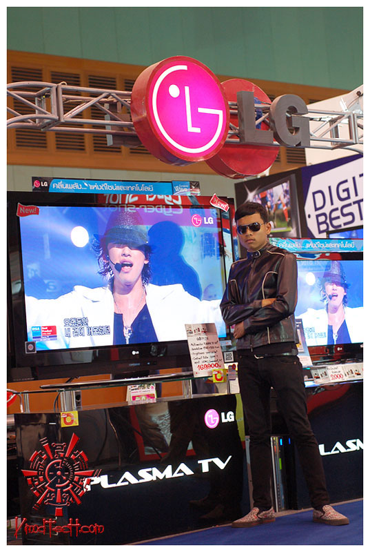 แล้วท่านเทพก็มาหยุดสะดุดอยู่ที่บูต LG อย่างไม่มีเหตุผล!! ซักครู่หนึ่งเราถึงได้ทราบว่าที่ท่านเทพมาหยุดยืนอยู่ที่บูตนี้ เพราะมายืนดูTVนั่นเองครับ กำครับ