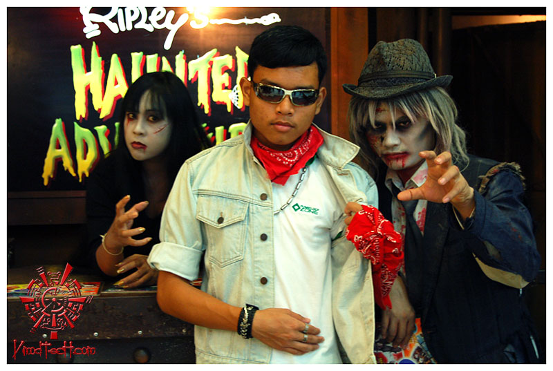 ถึงจะไม่ได้เข้าไป แต่ก็ถ่ายรูปกับภูตผีด้านหน้ามาให้ชมกันได้ครับ ช่วงนี้อะไรฟรีเอาหมดครับสำหรับท่านเทพ อิอิ