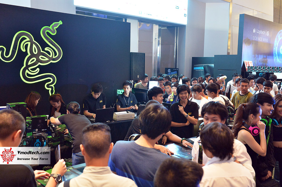 …บูธใหญ่ด้านหน้าก็คือบูธของ Razer ที่จัดโดยบริษัทยักษ์ใหญ่อย่าง ARC Ascenti Resources Company นั่นเองนะครับ ผู้คนล้นหลามมาจับจ่ายซื้อสินค้าโปรโมชันกันเพียบเลยทีเดียว