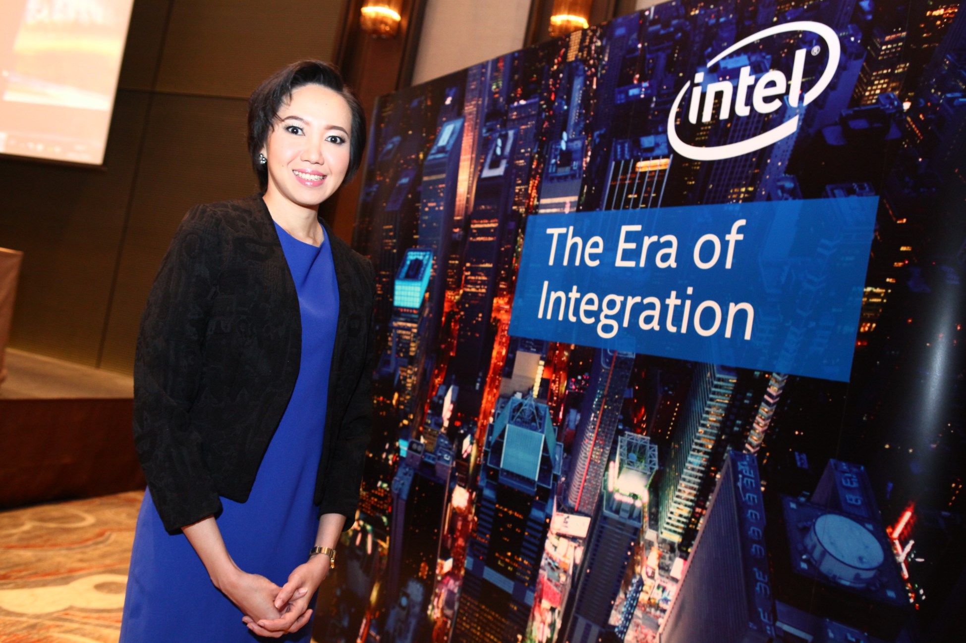 คุณสนธิญา หนูจีนเส้ง กรรมการผู้จัดการ บริษัท อินเทล ไมโครอิเล็กทรอนิกส์ (ประเทศไทย) จำกัด กับคอมพิ้วต์ สติ๊ก (Compute Stick) นวัตกรรมล่าสุดจากอินเทลที่จะยกระดับประสบการณ์การใช้งานอุปกรณ์ไอทีในยุค The Era of Integration
