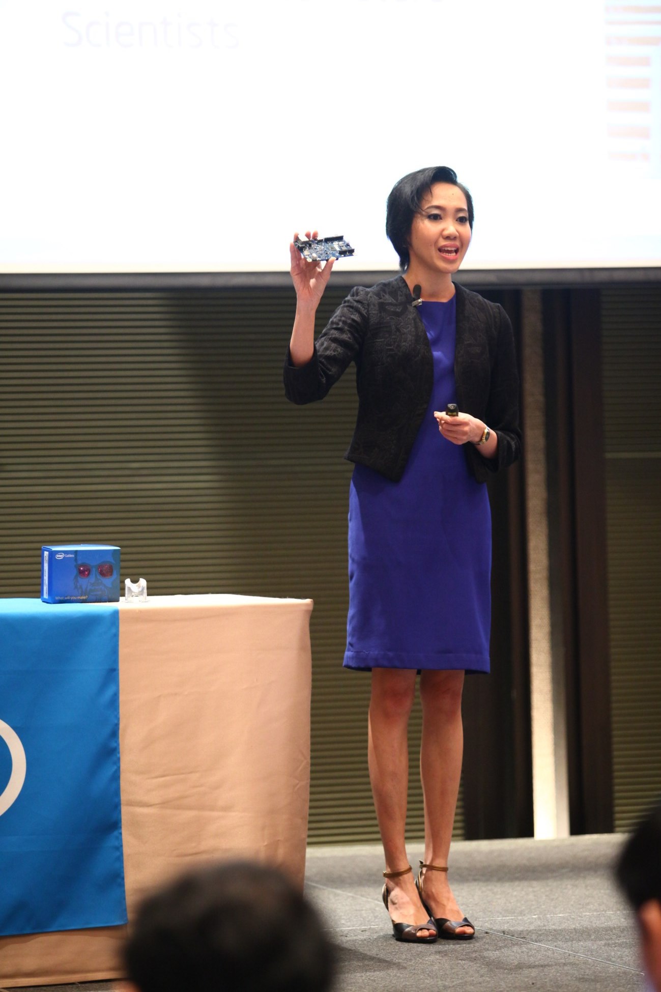 คุณสติยา ลังการ์พินธุ์ ผู้จัดการฝ่ายส่งเสริมการศึกษา บริษัท อินเทล ไมโครอิเล็กทรอนิกส์ (ประเทศไทย) จำกัด กับกาลิเลโอ บอร์ด (Galileo Board) นวัตกรรมจากอินเทลที่จะช่วยส่งเสริมวงการศึกษาวิทยาศาสตร์ไทย