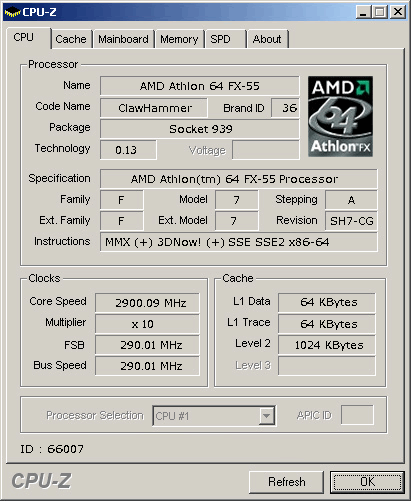 รายละเอียดของ AMD ATHLON FX-55 จาก www.amd.com