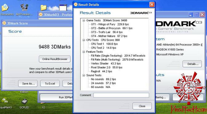 ส่วน3DMark03 หลังจากลากแล้วความเร็วก็เพิ่มขึ้นมาพอสมควรครับ เกือบ1,000คะแนนเลยทีเดียว ซึ่งอาจเป็นเพราะคะแนนของBenchmarkตัวนี้ CPU มีผลกับคะแนนไม่ค่อยมากนั่นเองครับ
