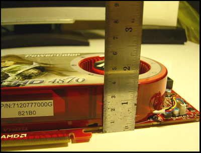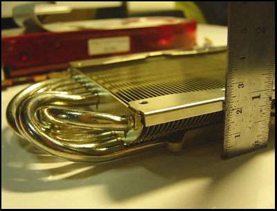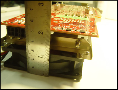 ![]() | วัดความหนาเมื่อติดตั้งพัดลมกับตัวซิงก์เรียบร้อย 2 นิ้วพอดีเลย หนาเอาเรื่องใส่การ์ดสองตัวกับเมนบอร์ดรุ่นไหนกันได้บ้างคงต้องไปดูที่ลิงก์ SLi / CF Motherboard Compatibility List |