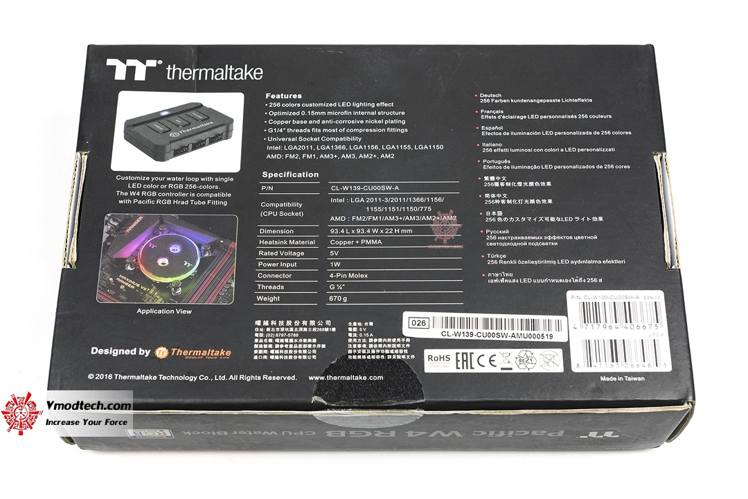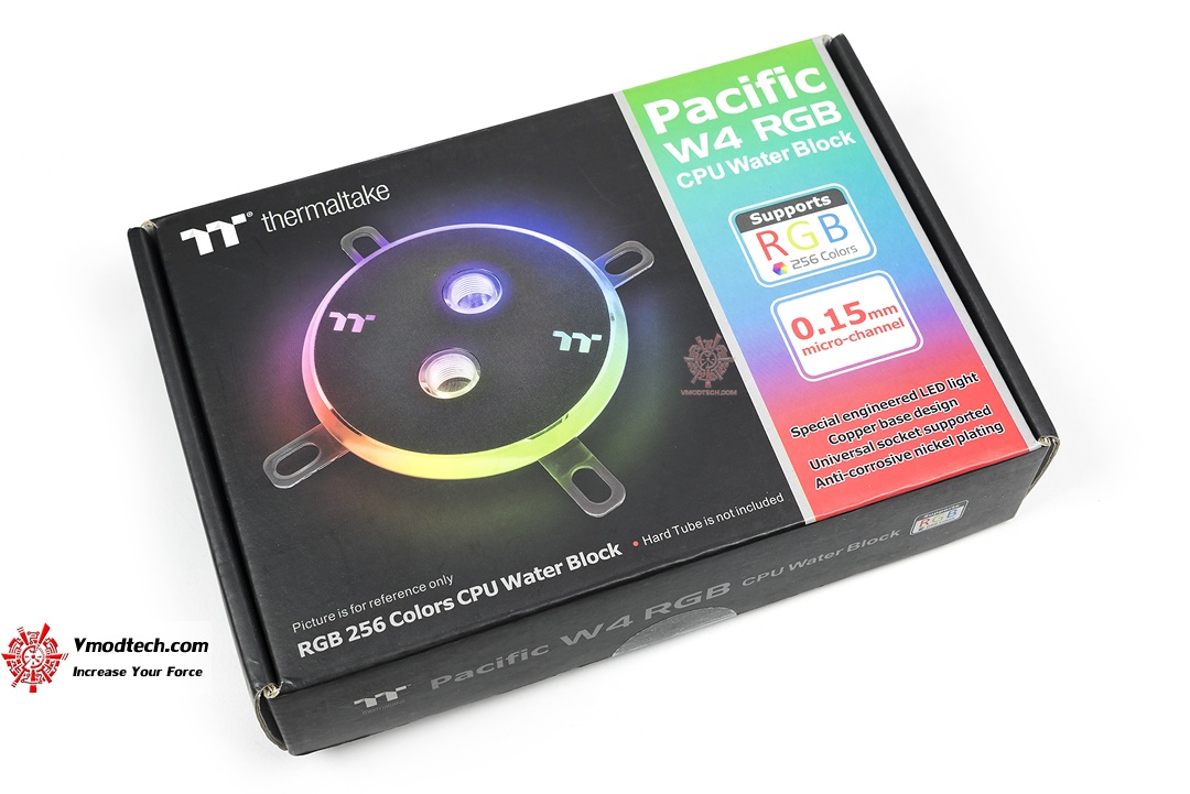 กล่องบรรจุตัว Thermaltake Pacific W4 นั้นได้รับการออกแบบมาแบบเรียบง่าย รายละเอียดด้านหลังกล่องก็อธิบายถึงลักษณะเฉพาะทั้งหมดเลย