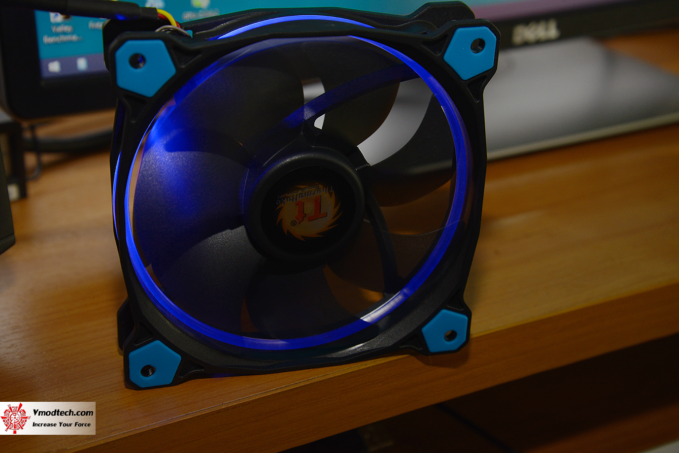 เมื่อทำการทดสอบในสถานะการทำงานก็จะมีไฟสีน้ำเงินอยู่ตรงขอบใบพัดดูสวยงามเป็นอย่างมากเลยครับ มีทั้งหน้าและหลังพัดลมครับ ดูโดดเด่นดีจริงๆ