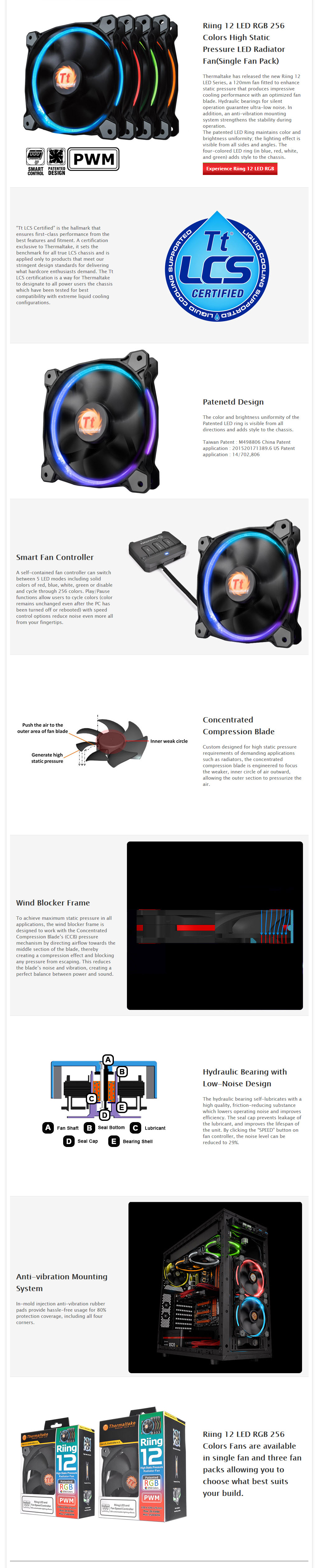 สวัสดีครับ ทุกๆท่านที่เยี่ยมชมเว็บไซต์ Vmodtech.com วันนี้เรามาชมชุดพัดลมระบายความร้อนจากทาง Thermaltake แบรนด์ดังที่เราคุ้นเคยกันดีครับ วันนี้เป็นชุดพัดลมที่สามารถควบคุมการทำงานได้ในชื่อรุ่น Thermaltake Riing 12 LED RGB Fan ซึ่งครั้งนึงผมเคยรีวิวไปแล้วแต่รุ่นนั้นเป็นเพียงแค่พัดลม 1ตัวแต่เป็นตัวสีเดียวครับ ในวันนี้จะเป็นรุ่นที่ประกอบด้วยพัดลม 3ตัว และชุด controller ควบคุมการทำงานของพัดลม 1ชุด โดยพัดลมทั้งสามตัวนั้นจะมีสีสรรการทำงานในโหมด RGB แม่สีทั้งสามสีรวมกันถึง 256สีเลยทีเดียวครับ ส่วนการทำงานของพัดลมทั้งสามตัวนั้นออกแบบมาให้ใช้งานติดตั้งในเคสคอมพิวเตอร์ครับ แต่ถ้าเอาจริงๆเนี่ยก็คือสามารถติดตั้งได้ทั้งกับชุดหม้อน้ำระบายความร้อนหรือส่วนท่านใดจะนำไปตกแต่ง Mod กับเคสก็สามารถทำได้เช่นกันครับ มาดูในส่วนของดีไซน์ครับ ชื่อก็บอกว่าเป็นรุ่น Riing ก็คือจะมีวงแหวนรอบๆตัวพัดลมนั่นเองครับโดยการทำงานนั้นเราสามารถควบคุมสีต่างๆได้ถึง 265สีกันเลยทีเดียว แน่นอนครับว่าไม่ใช่แค่ความสวยงามเพียงอย่างเดียวแต่ในเรื่องของเสียงรบกวนต่างๆนั้นต้องบอกว่าเงียบกริบจริงๆ ในรุ่นนี้ เดี๋ยวเราไปชมครับว่าสีสรรจะสวยงามมากน้อยขนาดไหนและการทำงานจะเป็นเช่นไรเป็นไปตามที่ทาง Thermaltake เคลมกันเอาไว้หรือไม่ แต่ก่อนอื่นไปชมรายละเอียดจากทางเว็บไซต์กันก่อนครับ