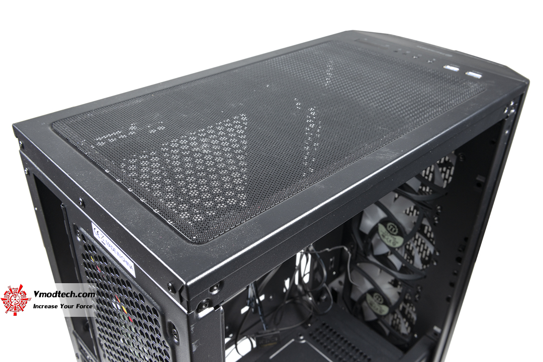 ที่ด้านบนนั้นจะมีแผ่นกรองฝุ่นที่ติดเอาไว้ด้วยแม่เหล็กครับ โดยผนังบนนั้นก็สามารถติดตั้งพัดลม หรือหม้อน้ำที่มีขนาดได้สูงสุด 14 มิลลิเมตรได้อีกสองตัวด้วย