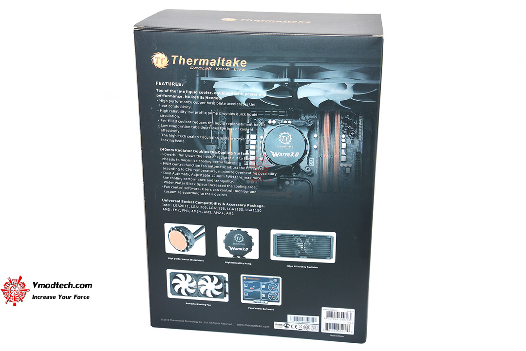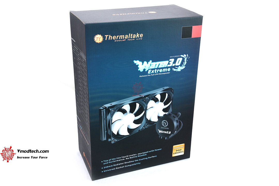 สวัสดีปีใหม่สมาชิก เพื่อนๆ น้องๆ ชาว Vmodtech.com ทุกท่านครับ กลับมาพบกับรีวิวอุปกรณ์ต่อพ่วงจาก Vmodtech เช่นเคย วันนี้นำเอา AIO Water Cooler หรือว่าเรียกกันง่ายๆว่าชุดน้ำสำเร็จรูปที่ถอดออกมาจากกล่องแล้วเราก็สามารถติดตั้งใช้งานได้ทันที ไม่ต้องยุ่งยากแต่ประการใด้ โดยวันนี้นำเอา Thermaltake Water 3.0 Extreme มารีวิวให้ได้ชมประสิทธิภาพกัน สำหรับ Thermaltake Water 3.0 Extreme นั้นเป็นชุดน้ำสำเร็จรูปที่ออกแบบมารองรับและใช้งานได้กับ CPU ทุก Socket ในยุคปัจจุบัน รวมถึงมันก็รองรับ Socket 2011 ได้เป็นอย่างดีด้วย มาชมรายละเอียดจากหน้าเว็บของ Thermaltake กันก่อนครับ
