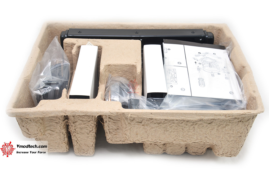 รายการของต่างๆที่บรรจุอยู่ในกล่อง ก็มี คู่มือ, พัดลม, ถุงใส่น็อตสกรูต่างๆ และ ตัว Liquid CPU Cooler