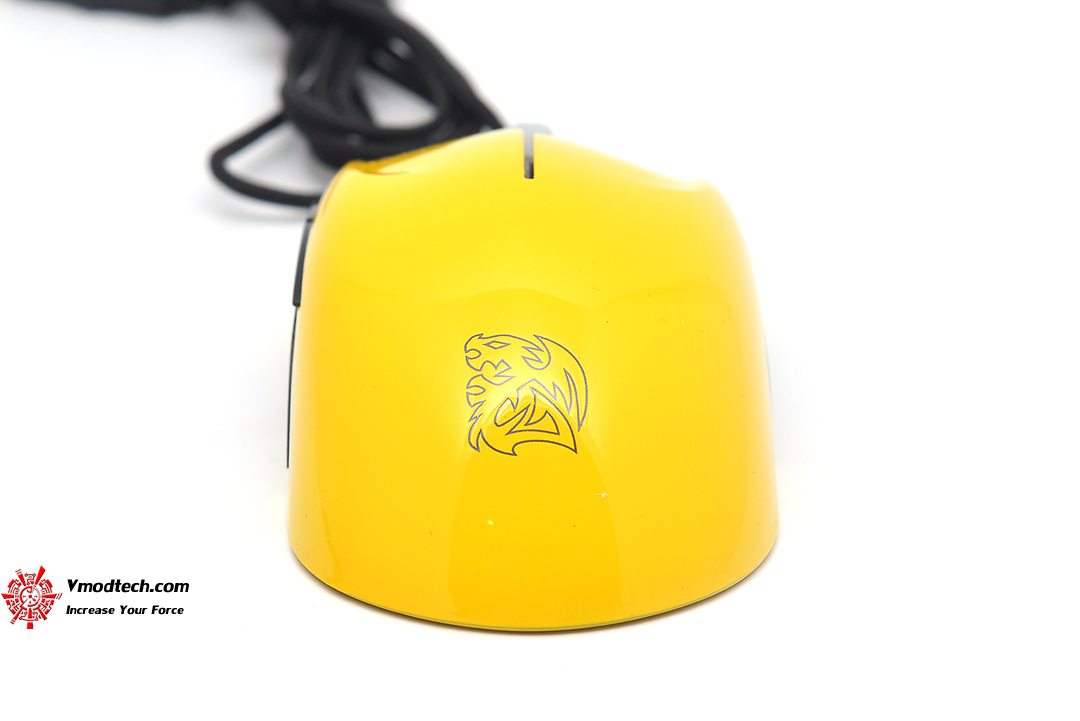 ตรงบริเวณท้ายเมาส์นั้นออกแบบมาให้มีความราบและลื่น รวมถึงมีโลโก้ของ Tt eSPORTS ที่จะเรืองแสงเมื่อเสียบใช้งานด้วย