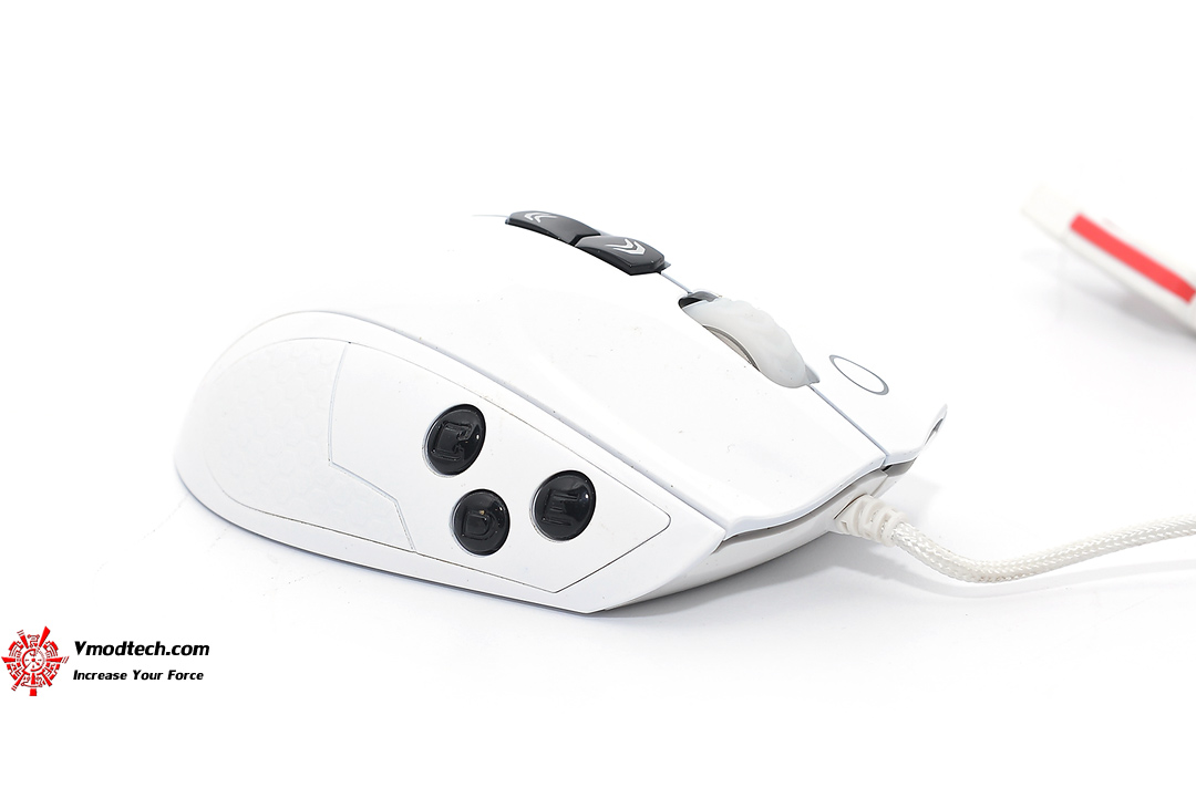ตรงบริเวณท้ายเมาส์นั้นออกแบบมาให้มีความราบและลื่นโดยตัวถังนั้นออกแบบมาเฉพาะสำหรับคนถนัดขวาครับ มันจะโอบกระชับกับอุ้งมือพอดีเลย