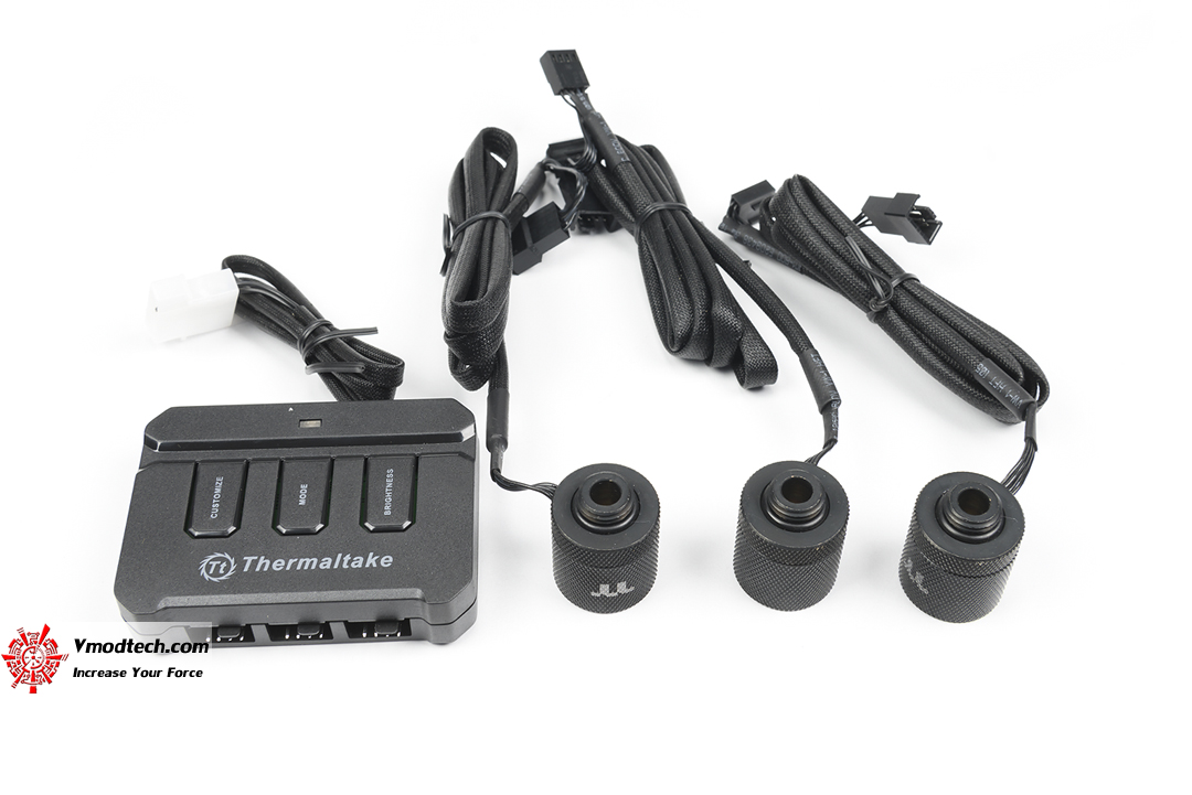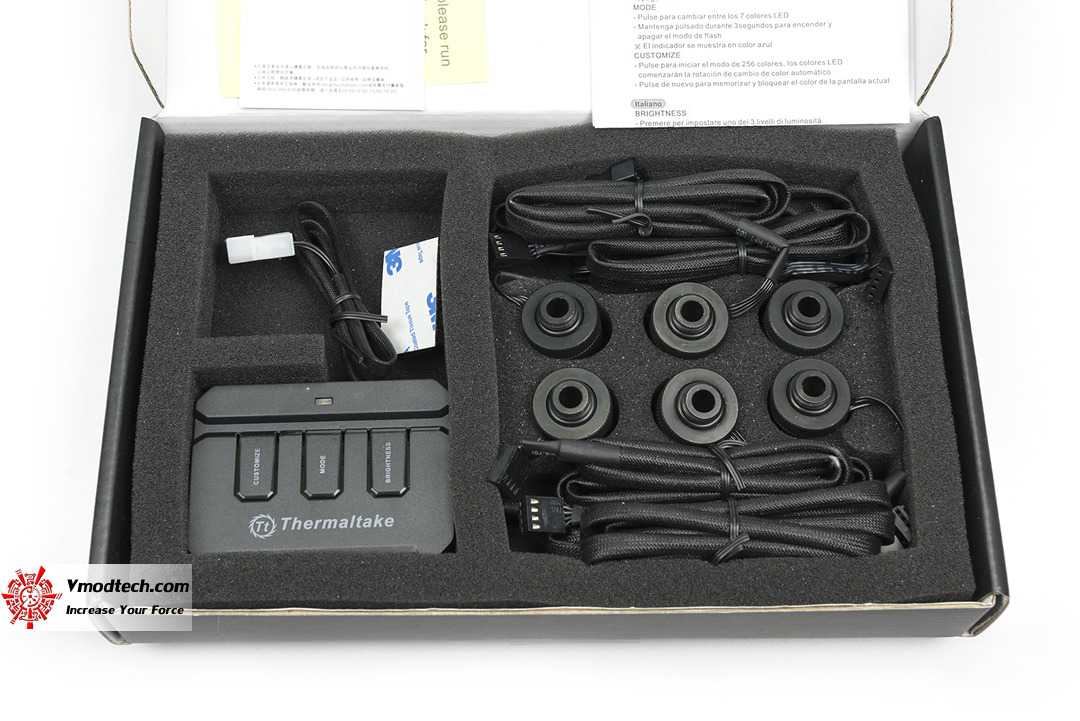 ในกล่องนั้นก็จะพบกับตัวควบคุม ซึ่งสามารถเลือกสีได้ เลือกวิธีการกระพริบได้ รวมถึงฟิตติ้งอีกหกหัว