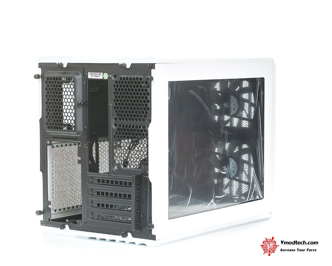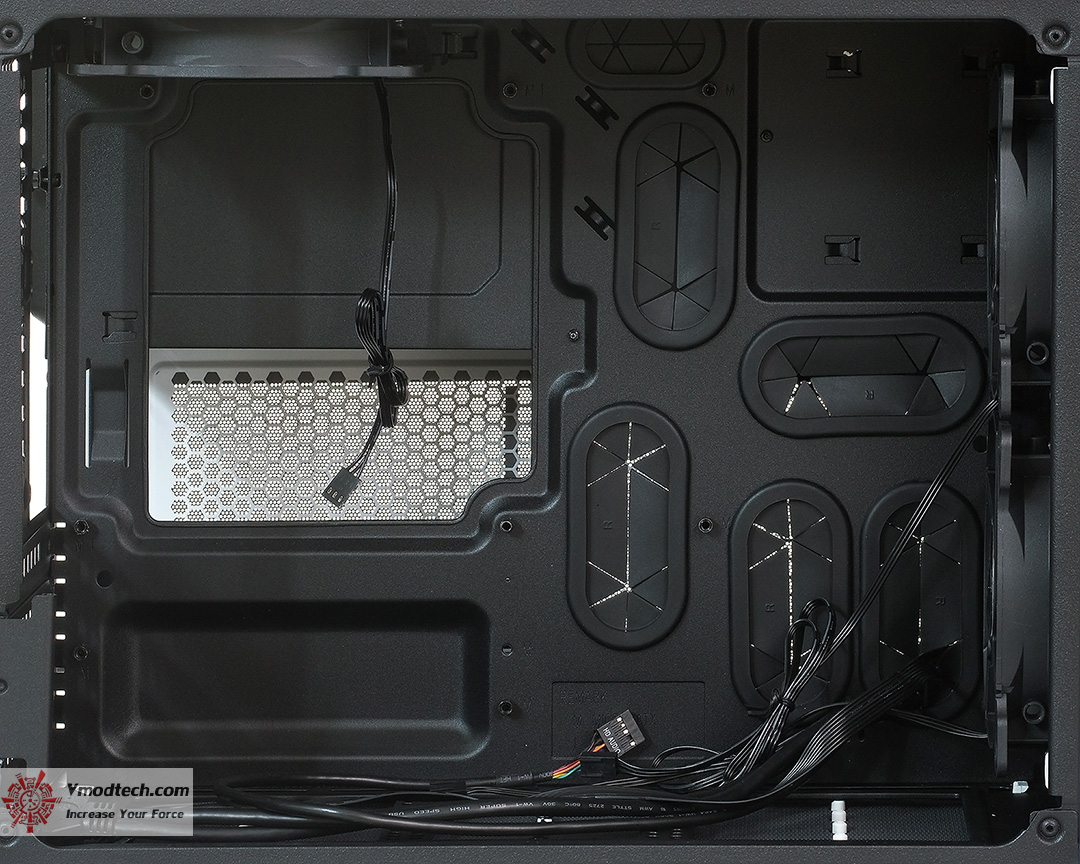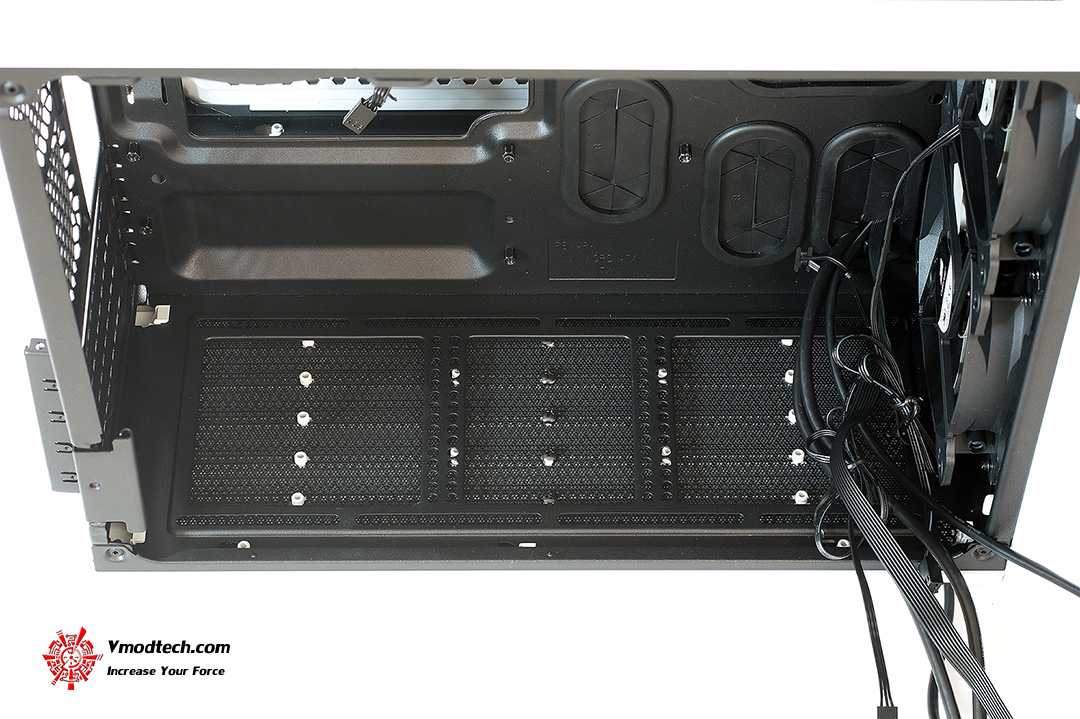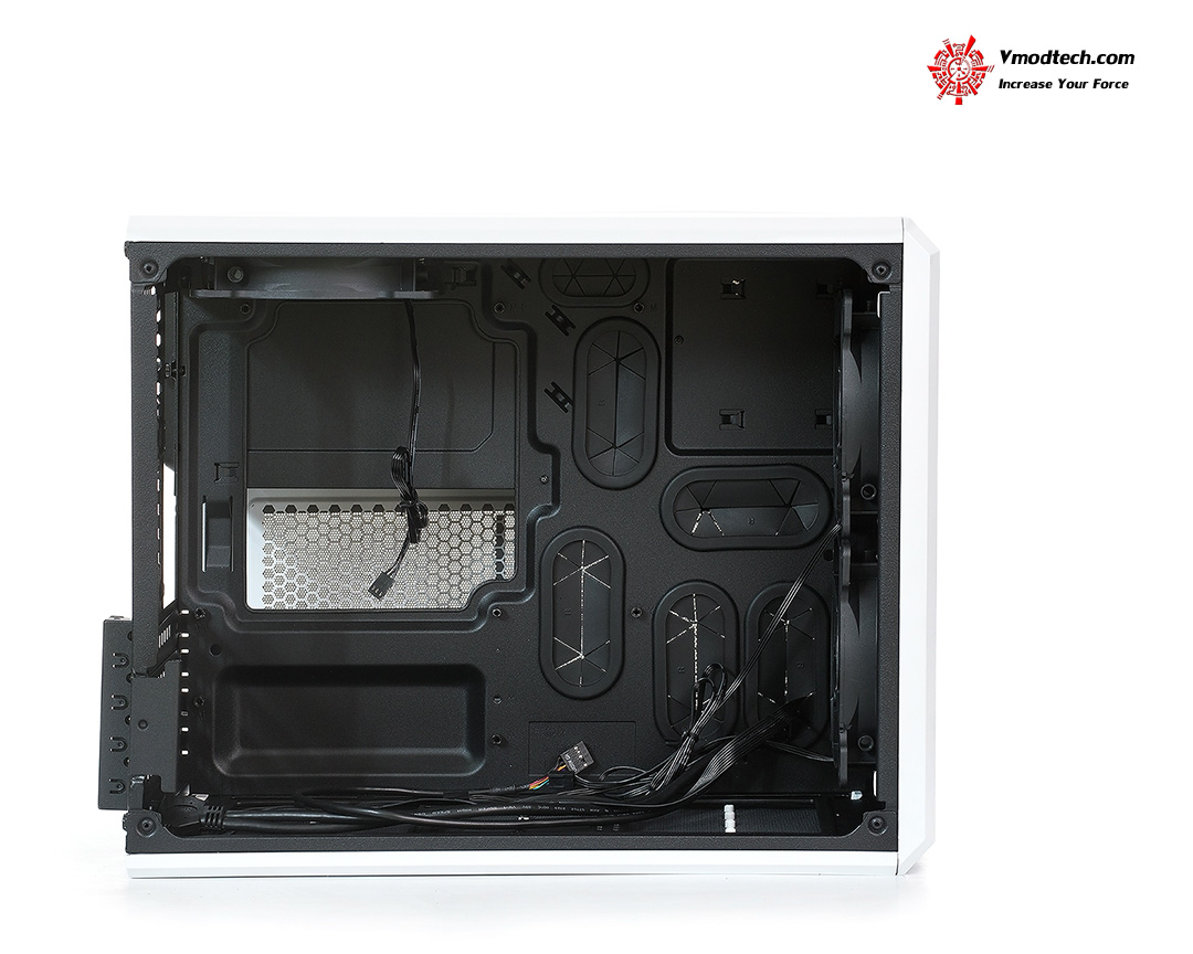 ด้านหน้าภายในโล่งสบายตาเมื่อไม่มี HDD Drive Cage พัดลม 120mm. 2 ตัวดูลมเย็นเข้าระบบเต็มๆครับ เย็นชุ่มช่ำ