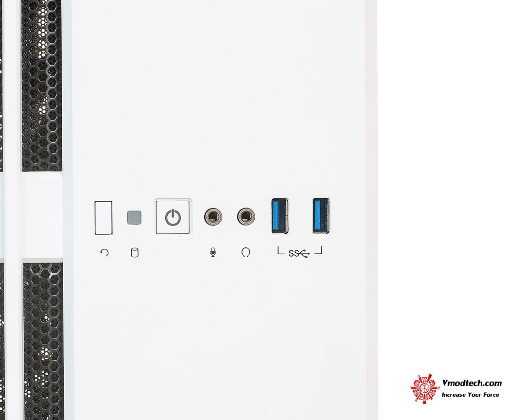 ด้านนี้จะเป็น Front Panel มี Power Switch, Reset Switch, Audio, Mic USB 3.0 2 ช่อง