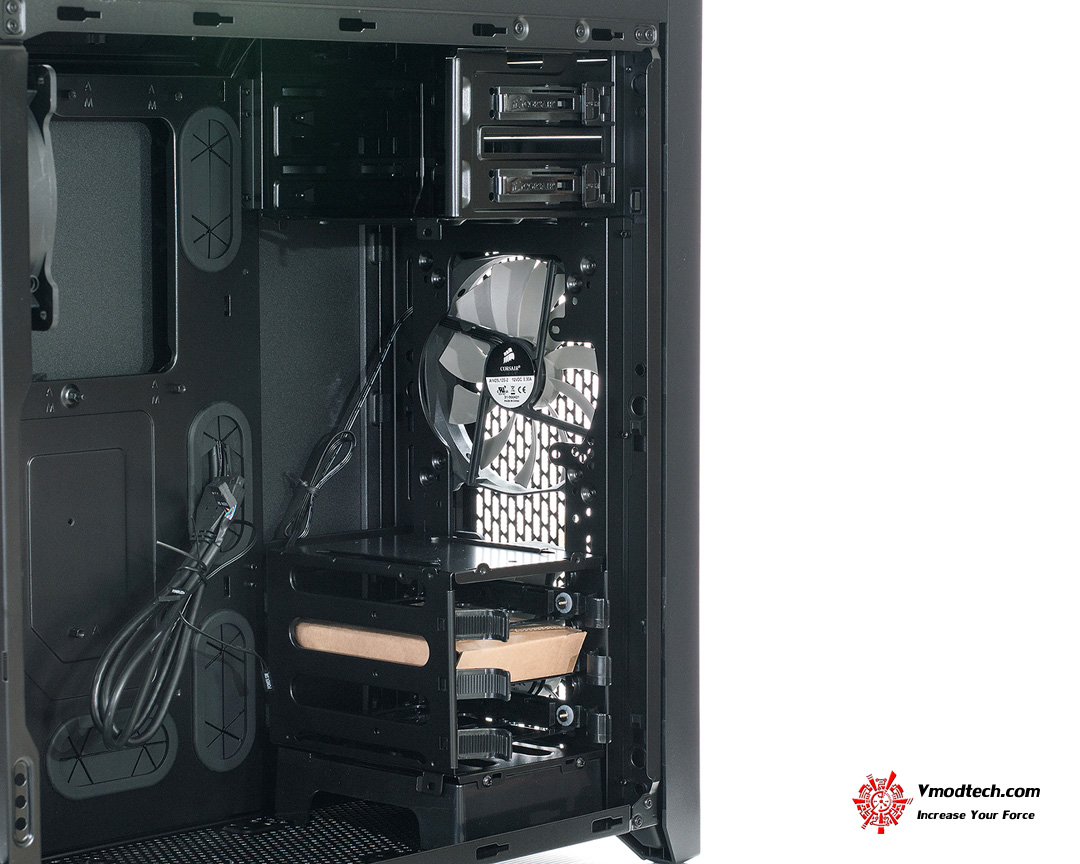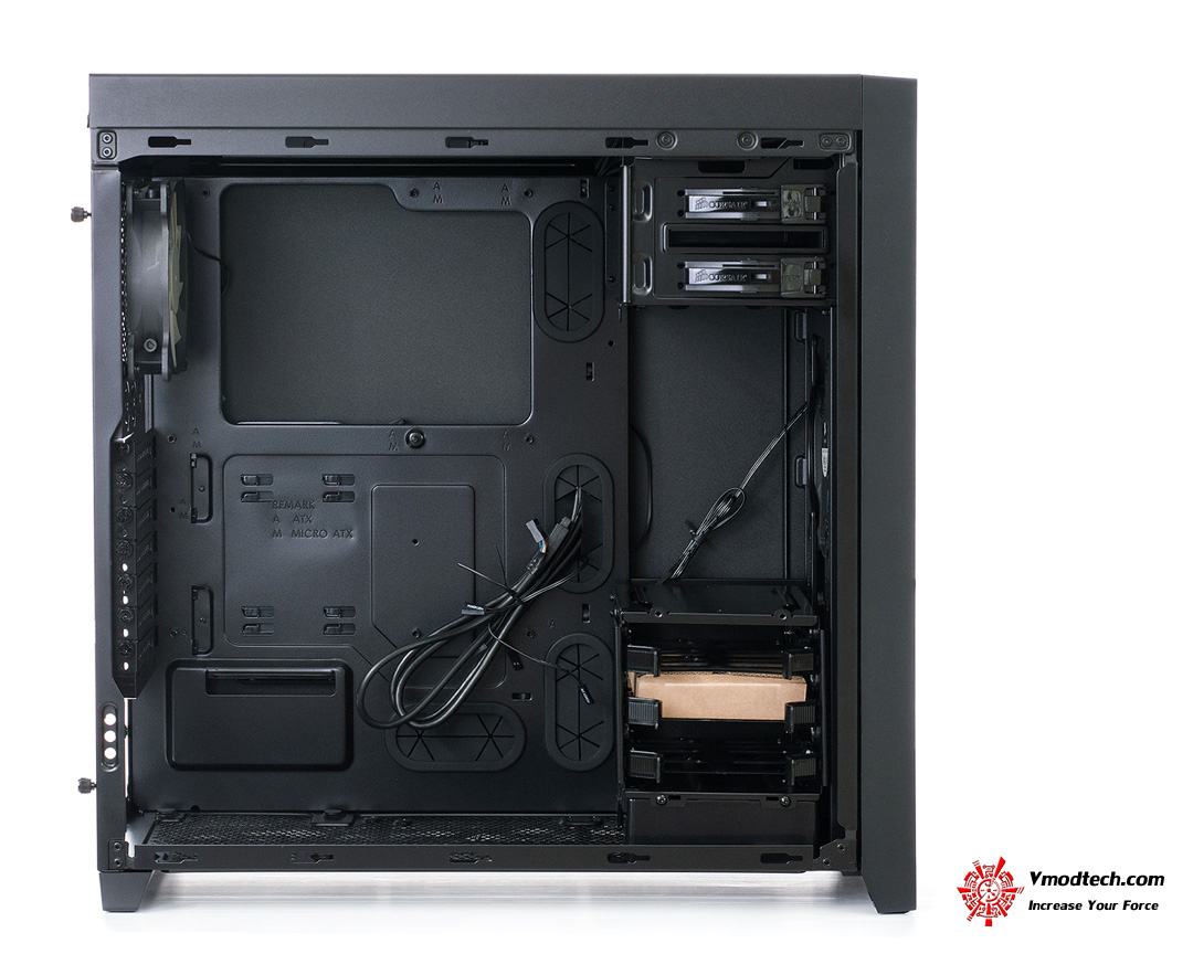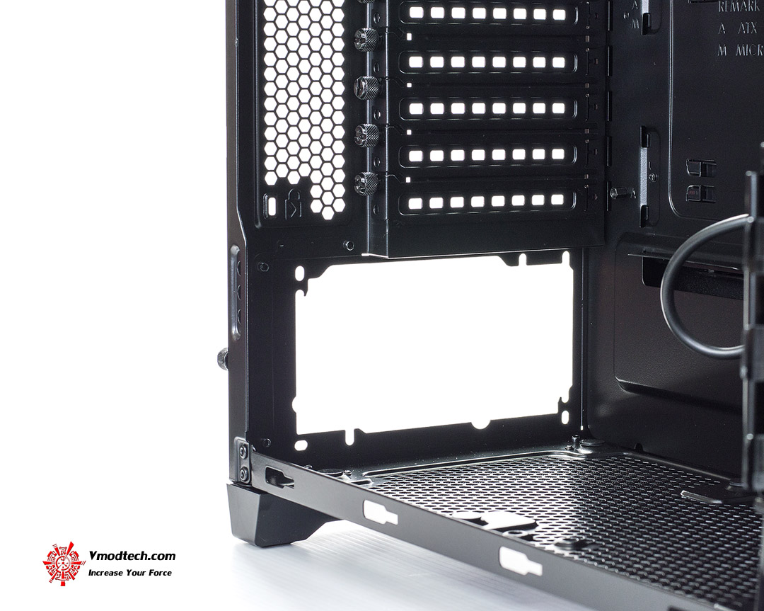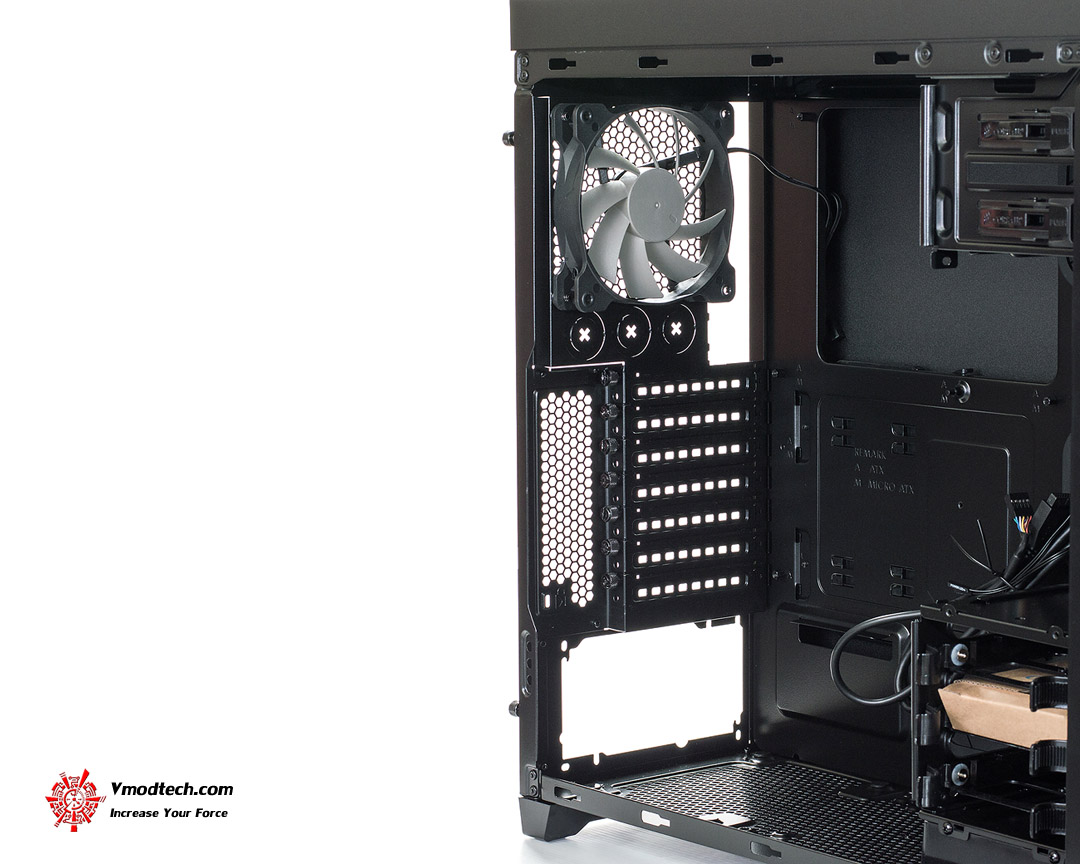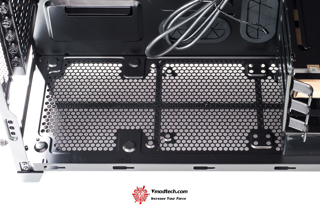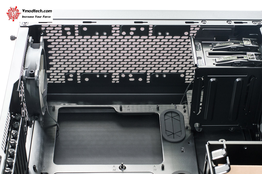 ดูด้านล่างภายในกันหน่อย นอกจากพื้นที่วาง PSU แล้ว ข้างๆสามารถเพิ่มพัดลม 120mm ได้ 2 ชิ้นครับ โดย 1 ชิ้น สามารถใส่เข้าไปใต้ Drive Bays 3.5″ตามรูปด้านล่างครับ