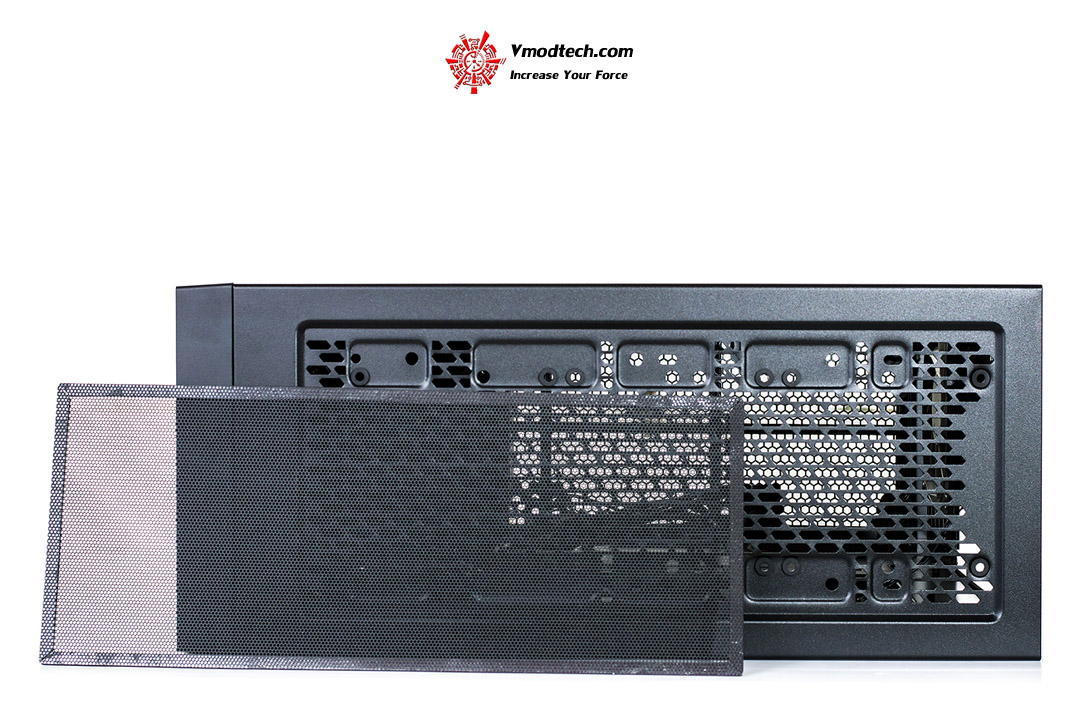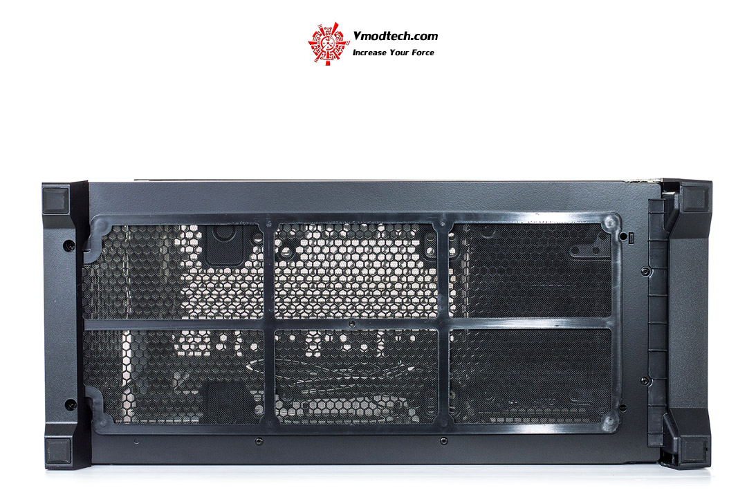 ถัดลงมาตรงนี้ก็เป็นช่องระบายความร้อนครับ มีพัดลม 140 mm 2 ชิ้น เป่าลมเย็นผ่าน HDD เข้าระบบ