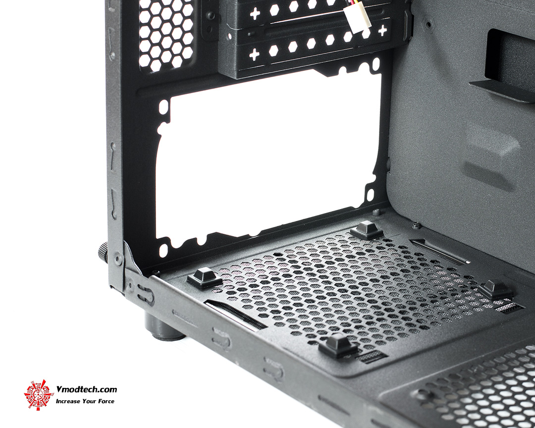 ล่างสุดเป็นตำแหน่งวาง PSU มีตัวยกระดับ 4 ขา สำหรับเปิดให้การระบายความร้อน ของ PSU ดียิ่งขึ้น